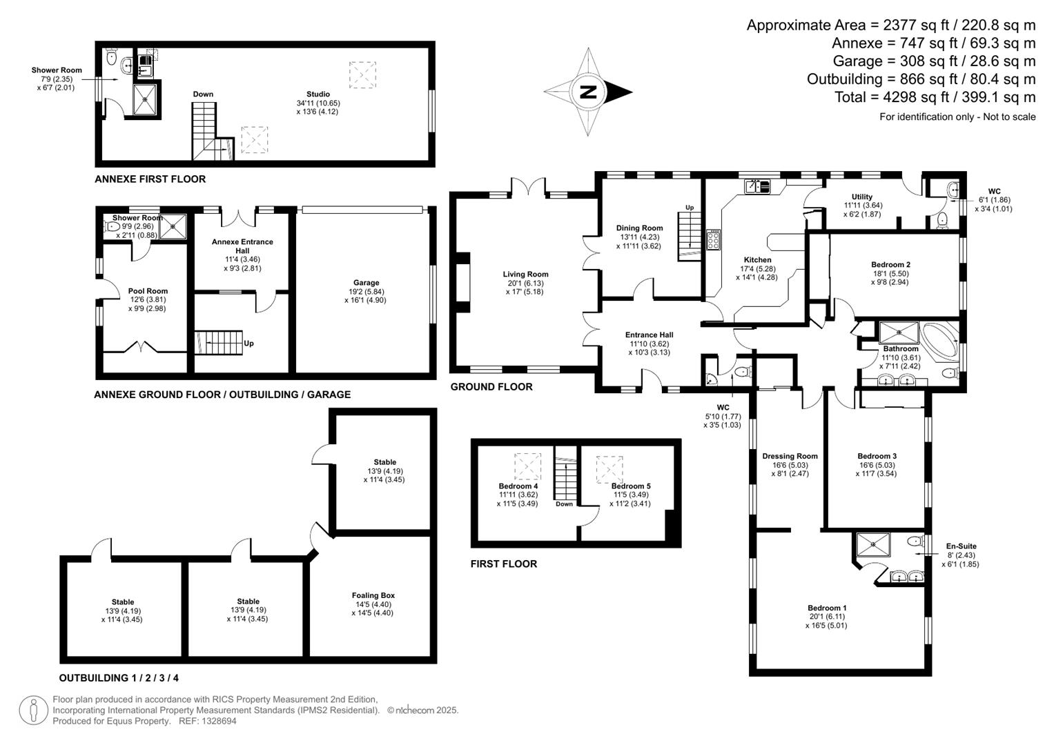 Set in just over 3.3 acres (*TBV) of gardens and paddocks with horse riding, country walks, cycle trails and Watersports on the doorstep! This detached well presented 5 bedroom property offers all these benefits as well as versatile extended family living options with a separate detached outbuilding of 866sq ft including a first floor studio with kitchenette and shower room and on the ground floor a games room, shower room and pump room plus large integral garage.