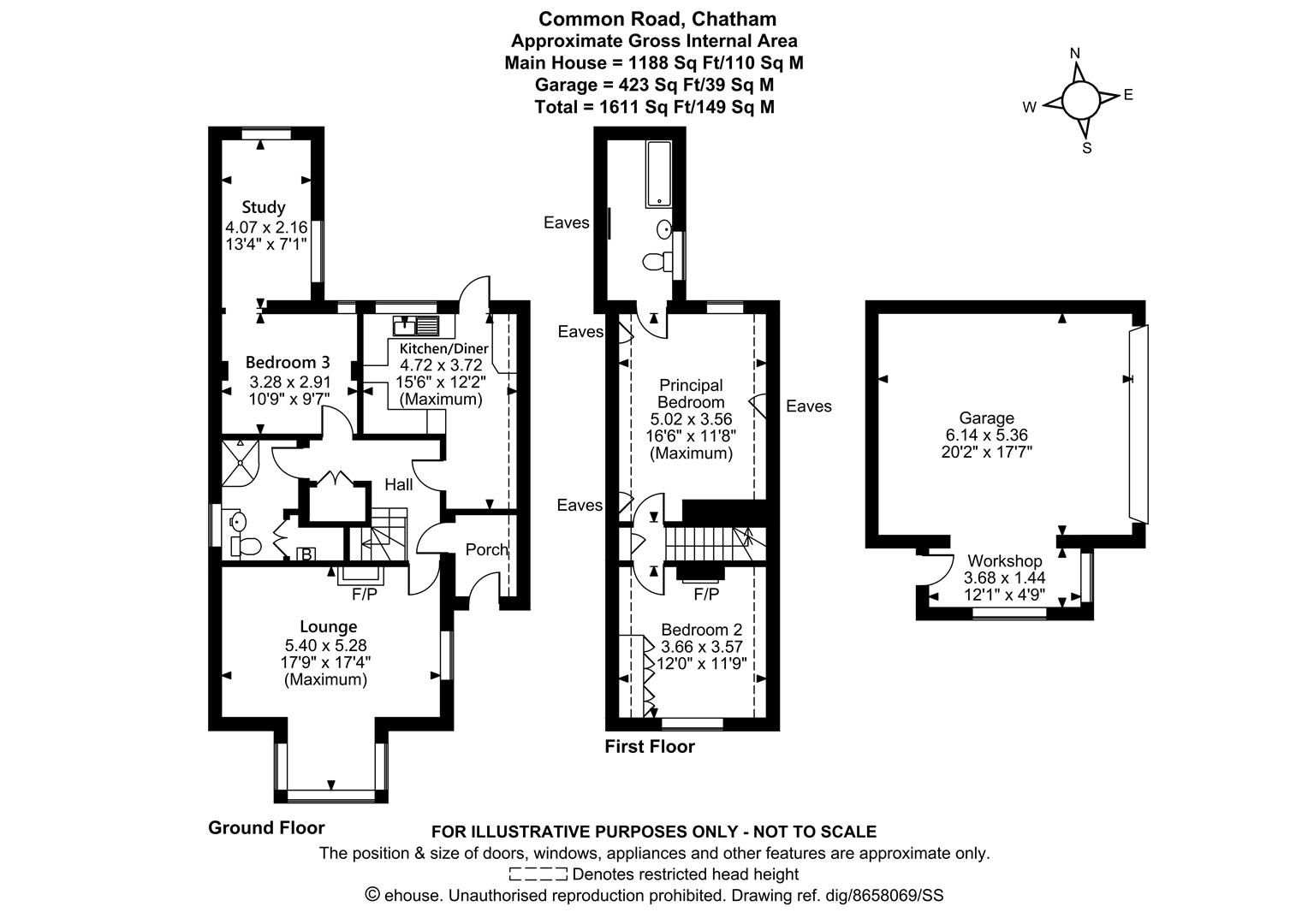 The property comprises a deceptively spacious three bedroom detached chalet bungalow which benefits from double glazing and gas fired central heating. The accommodation is arranged over two floors, the first floor with two good size bedrooms, the principal bedroom has an en-suite bathroom. Downstairs there is a good size lounge, kitchen/diner and study/bedroom with an adjoining room off. The gardens are landscaped and lead on to a very good size detached garage. Internal inspection is thoroughly recommended by the sole selling agents. Contact: PAGE & WELLS King Street office 01622 756703.
