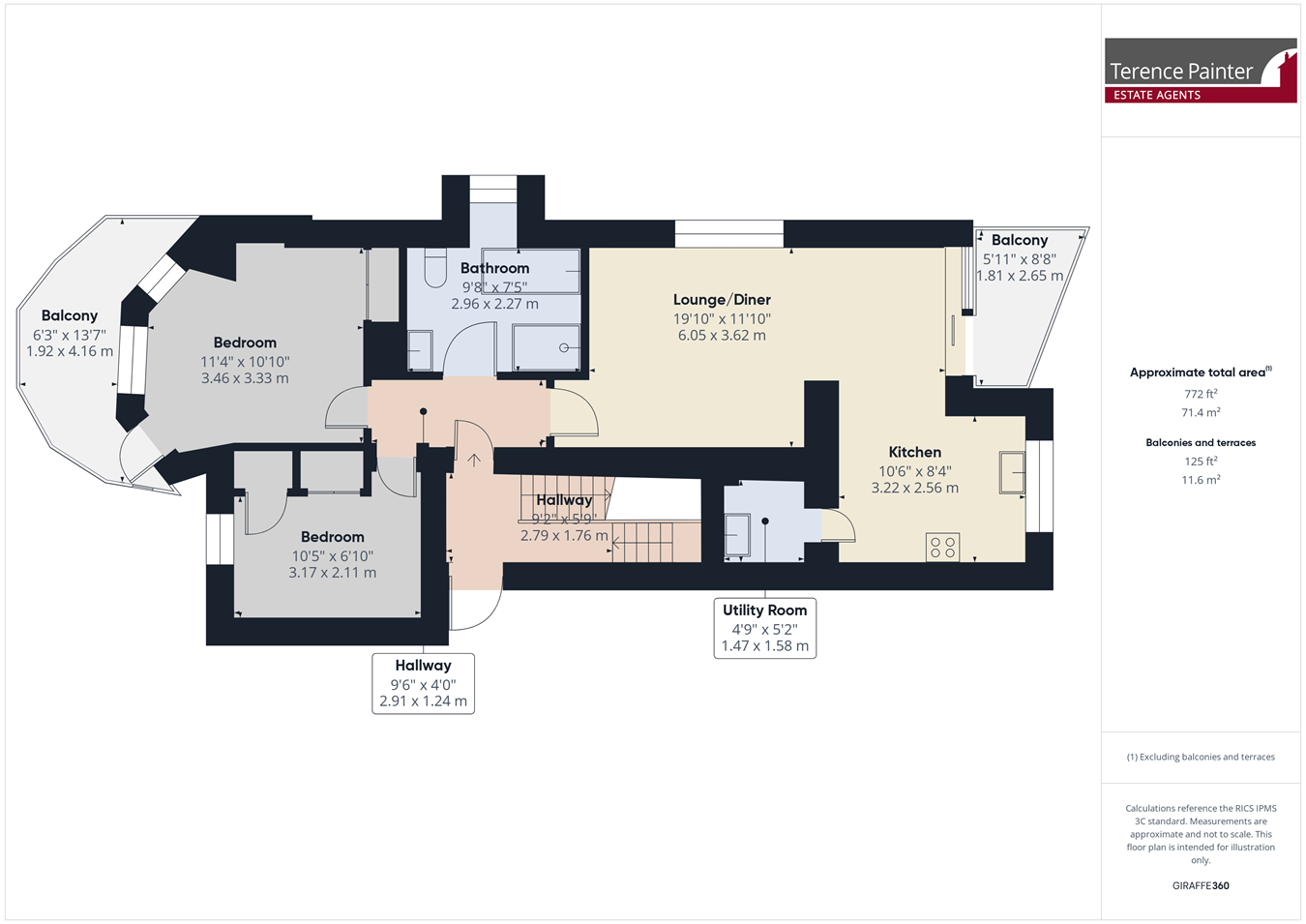 There is a seperate utility room which compliments the kitchen, luxury hotel style bathroom and two bedrooms including the principle bedroom boasting fitted wardrobes and a southerly facing balcony.
