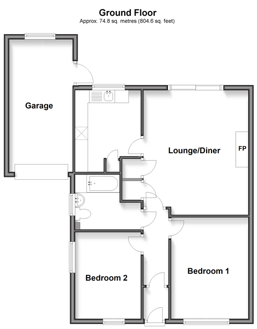 Please refer to the footnote regarding the services and appliances. Room sizes:Entrance HallBedroom 1: 13'1 x 9'10 (3.99m x 3.00m)Bedroom 2: 11'0 x 8'4 (3.36m x 2.54m)Bathroom: (L-shaped) 7'2 x 5'8 (2.19m x 1.73m) plus 3'8 x 2'8 (1.12m x 0.81m)Lounge/Diner: 16'0 = x 13'7 (4.88m x 4.14m)Kitchen: (L-shaped) 8'5 x 8'4 (2.57m x 2.54m) plus 5'8 x 2'1 (1.73m x 0.64m)Garage: 17'0 x 8'2 (5.19m x 2.49m)DrivewayFront and Rear Gardens