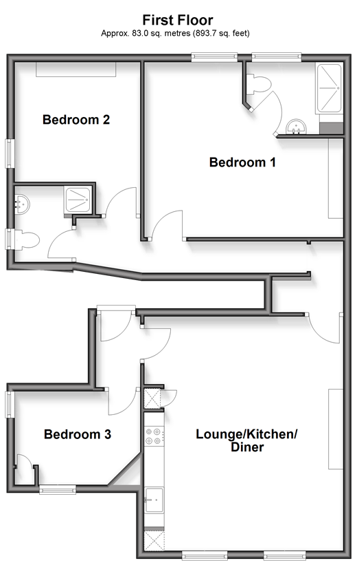 A stunning first floor apartment with the wow factor that has been lovingly updated by its current owner. With high ceilings, sash windows and plenty of natural light this property has to be seen to be appreciated. Room sizes:Entrance HallwayBedroom 3: 10'2 x 8'0 (3.10m x 2.44m)Lounge/Kitchen/Diner: 18'11 x 16'3 (5.77m x 4.96m)Bedroom 1: 15'2 x 14'4 (4.63m x 4.37m)En Suite Shower RoomBedroom 2: 10'2 x 8'7 (3.10m x 2.62m)Shower Room: 6'6 x 6'1 (1.98m x 1.86m)Allocated Parking