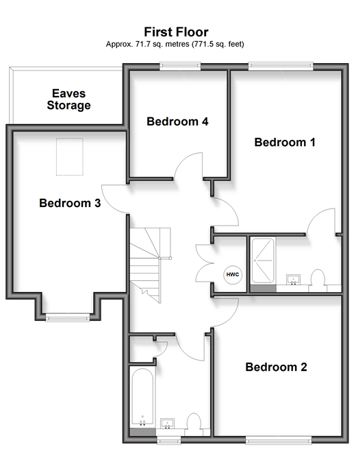 Please refer to the footnote regarding the services and appliances. Room sizes:Entrance HallDownstairs CloakroomKitchen/Living Area: 32'6 x 11'2 (9.91m x 3.41m)LandingBedroom 1: 14'5 x 6'7 (4.40m x 2.01m)En-Suite Shower RoomBedroom 2: 12'6 x 11'4 (3.81m x 3.46m)Bedroom 3: 14'4 x 10'1 (4.37m x 3.08m)Bedroom 4: 9'6 x 8'8 (2.90m x 2.64m)BathroomFront GardenFront DrivewayRear GardenGarage: 20'0 x 10'1 (6.10m x 3.08m)