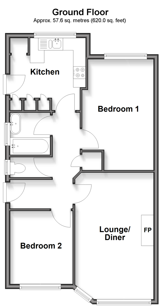 Please refer to the footnote regarding the services and appliances. Room sizes:Entrance HallSeparate ToiletBathroomKitchen: 10'4 x 9'9 (3.15m x 2.97m)Bedroom 1: 14'8 x 10'2 (4.47m x 3.10m)Lounge/Diner: 19'0 x 10'9 (5.80m x 3.28m)Bedroom 2: 9'9 x 8'3 (2.97m x 2.52m)Workshop: 10'6 x 9'6 (3.20m x 2.90m)Front GardenGarage & Off-Road ParkingRear Garden