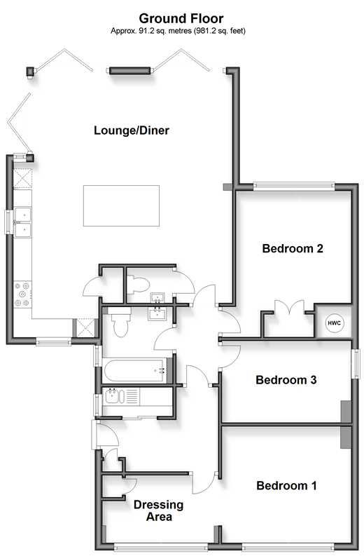 No onward chain. This detached bungalow is a shining example of what a modern touch can bring to a mature area. With a new extension added to the rear and a sweeping sea view across much of Seasalter, this bungalow enjoys one of the best vantage points Whitstable has to offer. The large multi car driveway provides ample room for parking, whilst the new layout inside also provides families with the option to call this home too. The three well-proportioned bedrooms are ample enough for four adults, whilst a dressing room to the primary bedroom could even be made into an en suite bathroom. The family bathroom and cloakroom have both been recently fitted, and there is a separate utility cupboard and boiler stored off the hallway. The real show stopper is the open-plan kitchen/diner/lounge area to the rear, the area has been beautifully extended. A new high-spec Wren kitchen with quartz worktops, upstand, splash back and window ledge's makes the perfect space for home cooks, with the large kitchen island blending the dining area to the lounge. One can envisage hosting dinner parties and spending many evenings enjoying the stunning views and sunsets from this spot. The lounge area sits in the main extension, which has been built with piled foundations and a warm roof and 3-metre skylight. No expense spared here, the by-fold doors enjoy the same sea view and make the outside space a welcoming part of the home. New drainage around the property, as well as a Baumit silicone and insulated render around the whole property have also been added. Room sizes:Entrance HallwayBedroom 1: 11'5 x 10'4 (3.48m x 3.15m)Dressing Room: 9'10 x 6'9 (3.00m x 2.06m)Bedroom 2: 13'0 x 10'4 (3.97m x 3.15m)Bedroom 3: 11'4 x 7'3 (3.46m x 2.21m)BathroomKitchen/Lounge/Diner: 20'3 x 19'6 (6.18m x 5.95m)DrivewayRear Garden