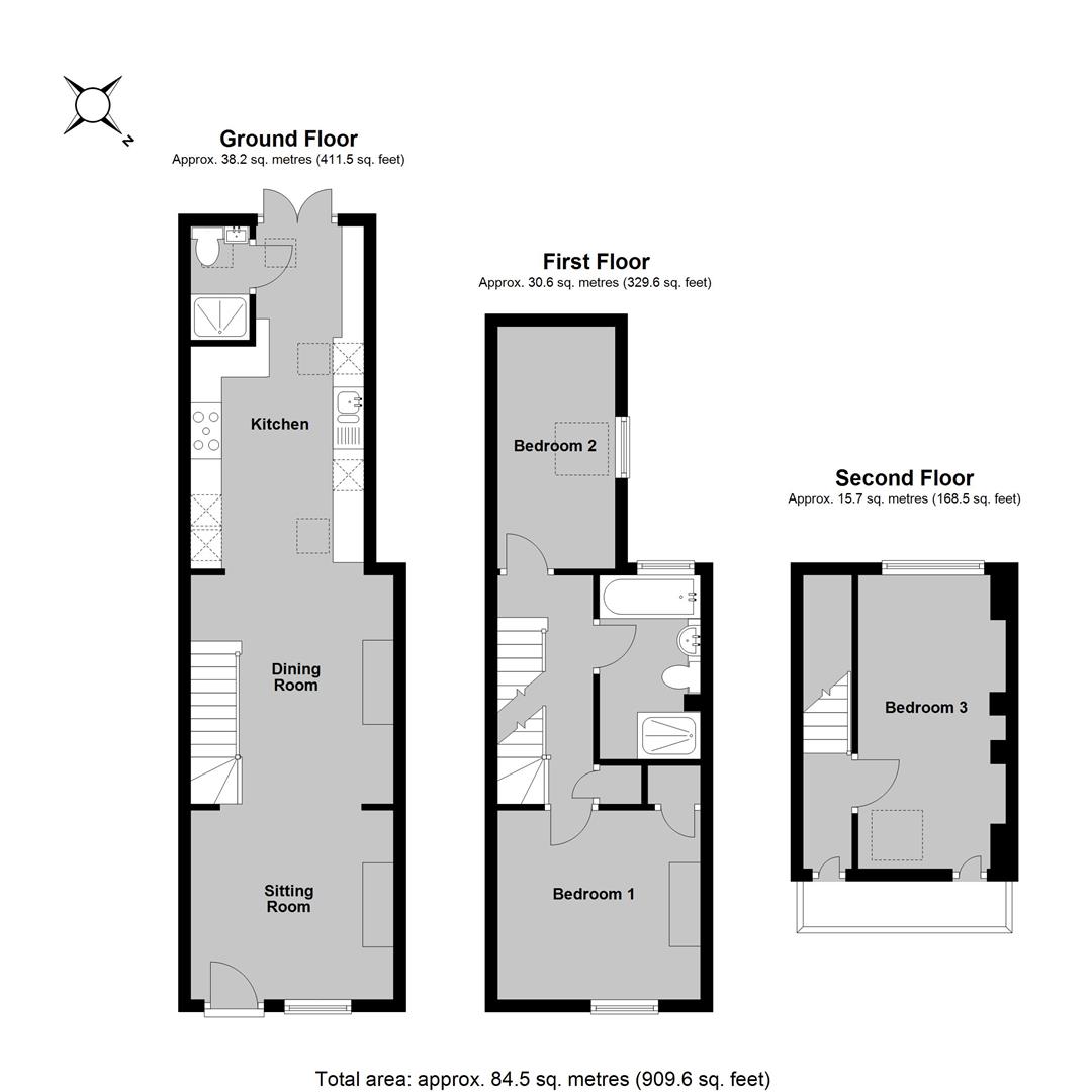 The comfortably proportioned accommodation is arranged over three floors and is arranged to provide open-plan accommodation comprising a sitting room with a wood-burning stove, a dining room, a contemporary kitchen with vaulted ceiling and casement doors opening to the garden, and a stylish shower room. To the first and second floors there are three generous bedrooms and a well-appointed bathroom with a separate shower enclosure.