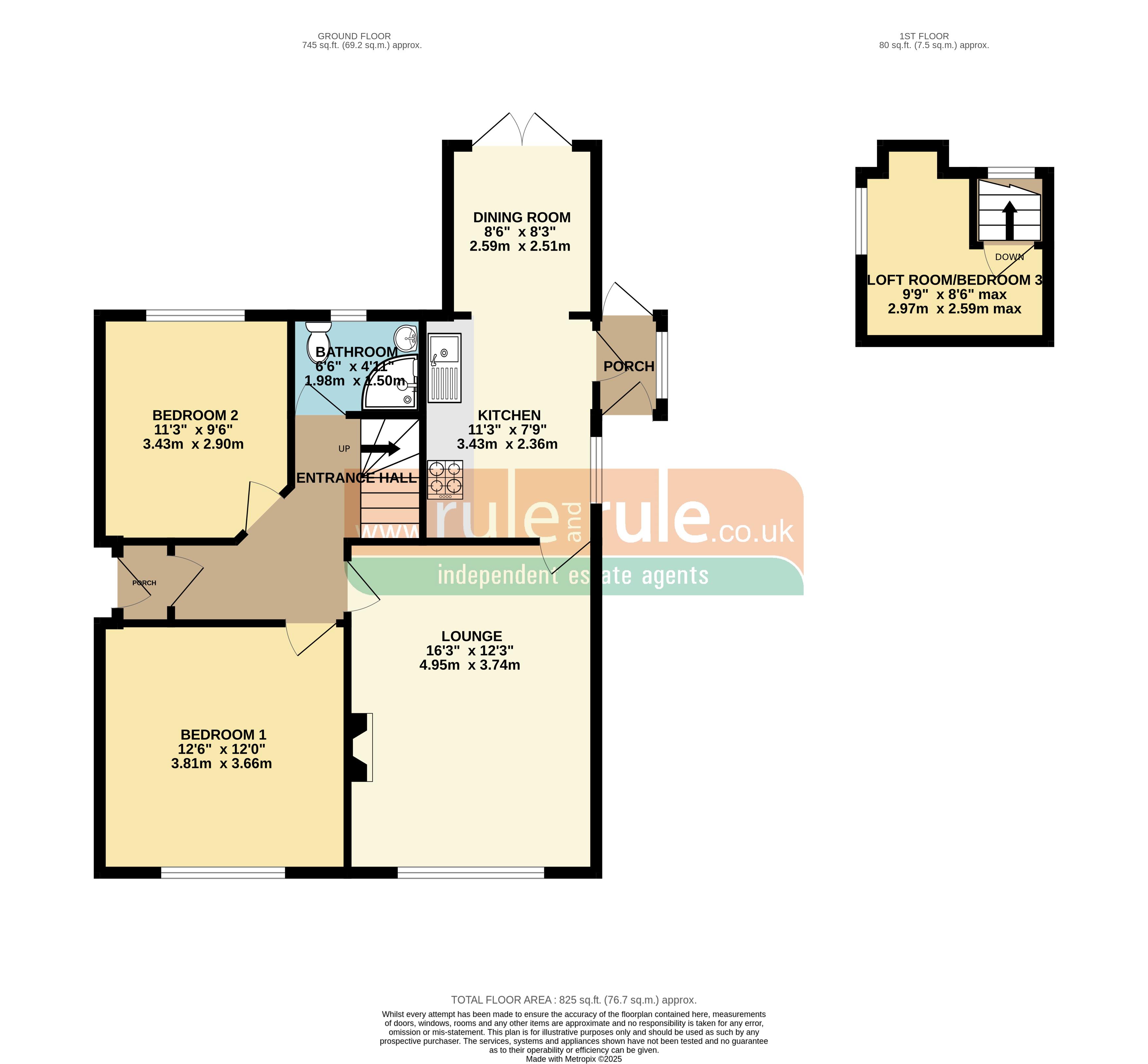 The ground floor features generously proportioned rooms, including a spacious lounge and a separate dining room perfect for entertaining. Upstairs, a cosy loft room offers versatility as a home office or third bedroom.
