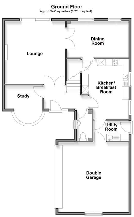 This Redrow built detached house offers spacious and modern living which is ideal for families or for those wanting extra space. Work from home with ease in the downstairs study. The private and secluded rear garden is perfect for outdoor entertaining or for quiet relaxation. The driveway for multiple cars and double garage adds convenience. Room sizes:Entrance HallCloakroomStudy: 9'1 x 8'8 (2.77m x 2.64m)Lounge: 15'7 x 14'7 (4.75m x 4.45m)Dining Room: 14'10 x 8'7 (4.52m x 2.62m)Kitchen/Breakfast Room: 14'4 x 8'6 (4.37m x 2.59m)Utility RoomLandingBedroom 1: 13'3 x 11'11 (4.04m x 3.63m)En-Suite Shower RoomBedroom 2: 11'10 x 11'6 (3.61m x 3.51m)Bedroom 3: 11'10 x 8'10 (3.61m x 2.69m)Bedroom 4: 10'5 x 8'10 (3.18m x 2.69m)BathroomDriveway & Double GarageFront & Rear Gardens