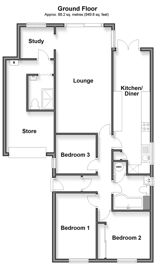 This beautifully presented extended three-bedroom detached bungalow offers spacious and versatile accommodation in a highly sought-after coastal location. Situated just a short walk from the sea and scenic shingle ridges, the property combines modern comfort with a peaceful setting. Outside, the property benefits from a low-maintenance garden, perfect for enjoying the outdoors without the upkeep. A private driveway with off-road-parking and a garage provide excellent convenience and storage. Finished to an immaculate standard throughout, this property is ready to move straight into and enjoy the best of coastal living. Room sizes:Entrance HallBedroom 1: 10'4 x 9'0 (3.15m x 2.75m)Bedroom 2: 12'4 x 7'4 (3.76m x 2.24m)BathroomBedroom 3: 7'9 x 7'4 (2.36m x 2.24m)Kitchen/Diner: 20'4 x 7'3 (6.20m x 2.21m)Lounge: 20'6 x 10'4 (6.25m x 3.15m)Study/Snug: 6'5 x 6'2 (1.96m x 1.88m)StoreShower RoomDrivewayFront and Rear Gardens