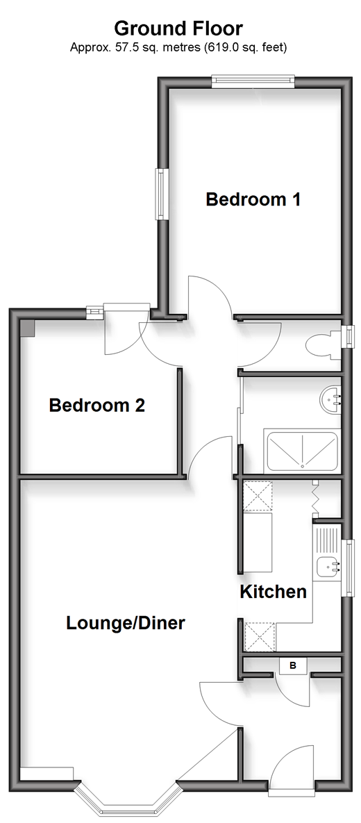 Please refer to the footnote regarding the services and appliances. Room sizes:Entrance Hall/LobbyLounge/Diner: 19'3 x 12'4 (5.87m x 3.76m)Kitchen: 9'8 x 6'3 (2.95m x 1.91m)HallwayBedroom 1: 12'8 x 9'8 (3.86m x 2.95m)Bedroom 2: 8'9 x 8'8 (2.67m x 2.64m)W.CWet Room1 allocated parking spaceShared courtyard garden