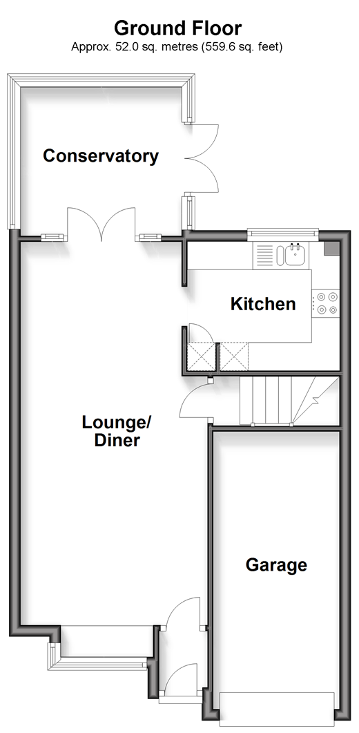 Please refer to the footnote regarding the services and appliances. Room sizes:PorchHallwayLounge/Diner: 22'3 x 10'9 (6.79m x 3.28m)Kitchen: 8'8 x 7'11 (2.64m x 2.41m)Conservatory: 10'6 x 9'5 (3.20m x 2.87m)LandingBedroom 1: 13'3 x 9'11 (4.04m x 3.02m)Bedroom 2: 9'11 x 8'4 (3.02m x 2.54m)Bedroom 3: 8'2 x 7'5 (2.49m x 2.26m)Front & Rear GardensGarageOff Road Parking