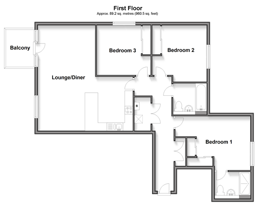 Please refer to the footnote regarding the services and appliances. Room sizes:Entrance HallwayLounge/Diner: 21'3 x 11'6 (6.48m x 3.51m)BalconyKitchen: 10'8 x 7'3 (3.25m x 2.21m)Bathroom: 7'2 x 7'2 (2.19m x 2.19m)Bedroom 1: 15'9 x 10'9 (4.80m x 3.28m)En Suite Shower RoomBedroom 2: 11'3 x 11'2 (3.43m x 3.41m)Bedroom 3: 10'9 x 10'4 (3.28m x 3.15m)Allocated Parking Space