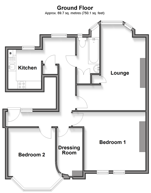 Set within an attractive period building, this large ground floor flat offers a wonderful blend of charm, character, and modern convenience. The property boasts generously proportioned rooms with high ceilings and an abundance of natural light throughout. The accommodation comprises a welcoming entrance hall, a bright and airy living room, and a well-fitted kitchen. Bedroom one is a stand out feature, complete with a dressing room offering excellent wardrobe space. A second double bedroom provides versatility for guests, a home office, or other use. In addition, the property benefits from a separate storage cupboard, ideal for keeping the home clutter-free. With its character features and spacious layout, this flat is perfect for those seeking both charm and practicality in a desirable location. Room sizes:Entrance HallBedroom 2: 13'9 x 10'2 (4.19m x 3.10m)Dressing RoomBedroom 1: 12'8 x 12'2 (3.86m x 3.71m)Lounge: 17'11 x 9'3 (5.46m x 2.82m)BathroomKitchen: 8'1 x 6'10 (2.47m x 2.08m)