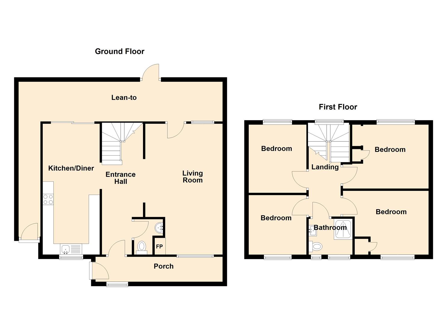 To the ground floor, you ll find a large living room perfect for relaxing or entertaining, along with a modernised kitchen/diner that opens onto a useful rear lean-to, ideal as a utility or additional storage space. Upstairs, there are four well-proportioned bedrooms and a family shower room.