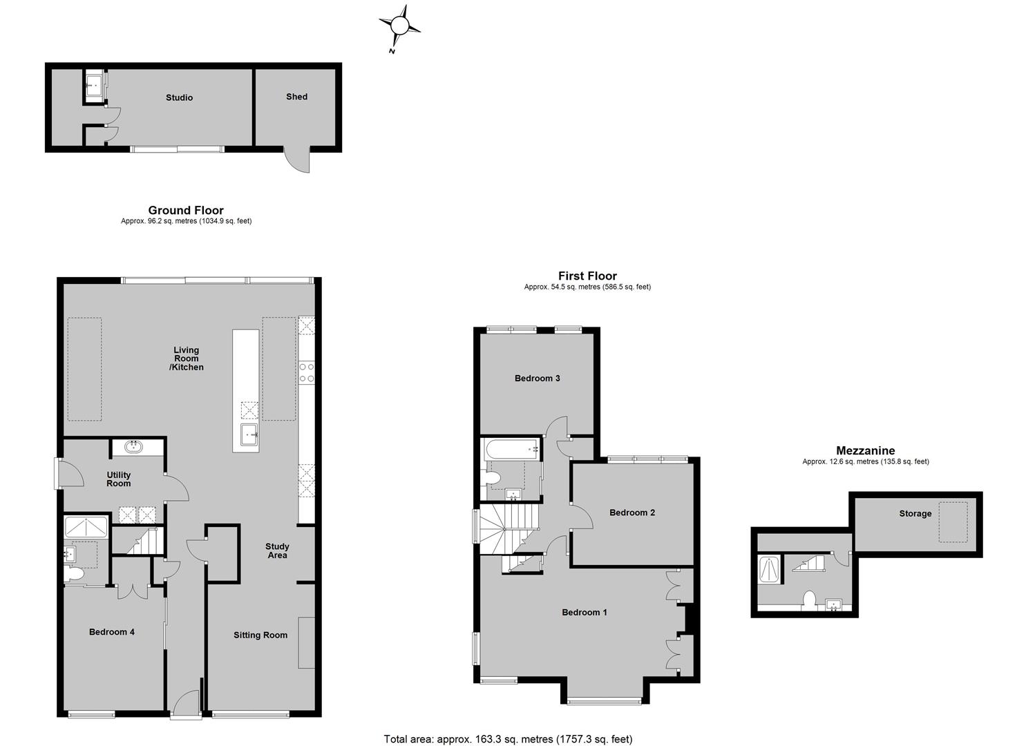 The generous and flexible accommodation is arranged to provide an entrance hall opening to a large open-plan living room which overlooks the South facing garden and incorporates a bespoke kitchen, a study area leading to a sea facing sitting room with wood-buring stove, and away from the main living space there is a guest bedroom with en-suite shower room, and a utility room. To the first floor there are three double bedrooms and two bathrooms, including an en-suite shower room to the principal bedroom, which has superb sea views.