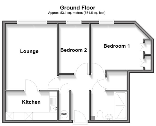 Please refer to the footnote regarding the services and appliances. Room sizes:HallwayKitchen: 10'11 x 6'1 (3.33m x 1.86m)Lounge: 14'1 x 10'8 (4.30m x 3.25m)Bedroom 1: 12'8 x 9'10 (3.86m x 3.00m)Bedroom 2: 10'8 x 6'6 (3.25m x 1.98m)Bathroom: 8'0 x 6'1 (2.44m x 1.86m)