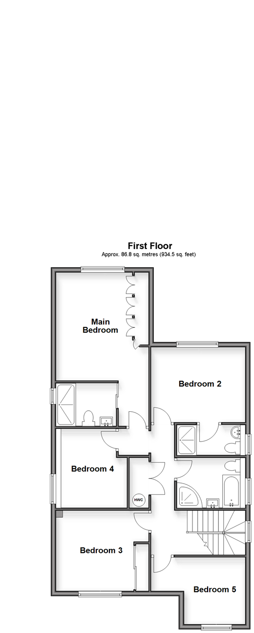 Room sizes:GROUND FLOORHallwayStudy: 8'8 x 7'9 (2.64m x 2.36m)Family Room: 12'0 x 10'5 (3.66m x 3.18m)Cloakroom: 7'9 x 3'3 (2.36m x 0.99m)Lounge: 20'6 x 12'0 (6.25m x 3.66m)Utility Room: 7'9 x 5'3 (2.36m x 1.60m)Kitchen: 26'10 maximum x 12'3 maximum (8.18m x 3.74m)Dining Area: 11'9 x 8'8 (3.58m x 2.64m)FIRST FLOORLandingBedroom 5/Study: 12'3 maximum x 8'9 (3.74m x 2.67m)Bedroom 3: 12'1 x 10'6 (3.69m x 3.20m)Bathroom: 8'10 x 6'5 (2.69m x 1.96m)Bedroom 4: 10'4 x 9'2 (3.15m x 2.80m)Bedroom 2: 12'3 x 9'8 (3.74m x 2.95m)Main Bedroom: 13'6 x 12'0 (4.12m x 3.66m)En Suite Shower Room: 8'0 x 5'7 (2.44m x 1.70m)OUTBUILDING 2Room 1: 17'5 x 17'0 (5.31m x 5.19m)Room 2: 16'11 x 7'1 (5.16m x 2.16m)Toilet: 6'2 x 3'8 (1.88m x 1.12m)Storage: 17'1 x 5'1 (5.21m x 1.55m)OUTBUILDING 1Garage: 17'4 x 10'10 (5.29m x 3.30m)OUTSIDERear GardenFront GardenDriveway