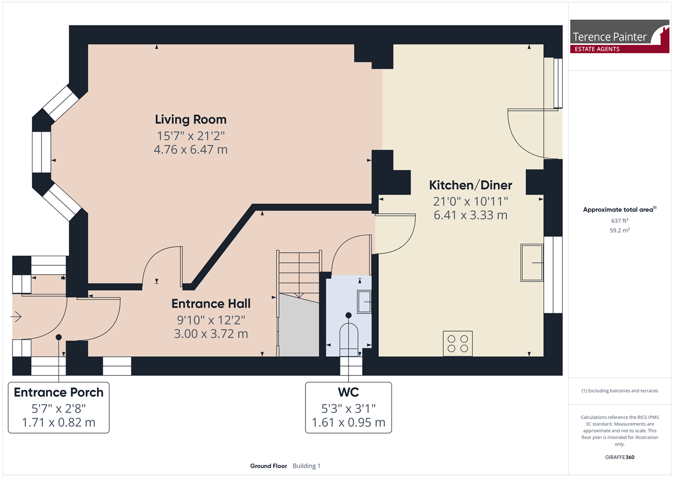 3.72m x 3.00m (12' 2" x 9' 10") There are carpeted stairs to all floors, under stairs storage cupboard, double glazed window to the side of the property, wood flooring, radiator, down lights and doors leading off to the living room, kitchen/diner and cloakroom/w.c.