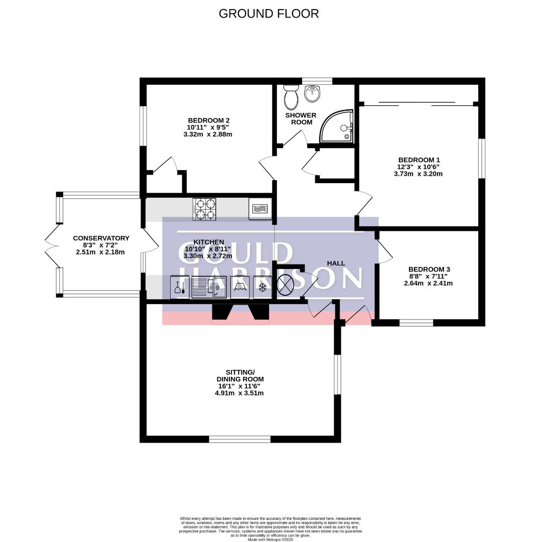 Occupying a corner plot, the very well presented accommodation comprises an entrance hall, sitting room, conservatory, modern fitted kitchen and shower room, three bedrooms.