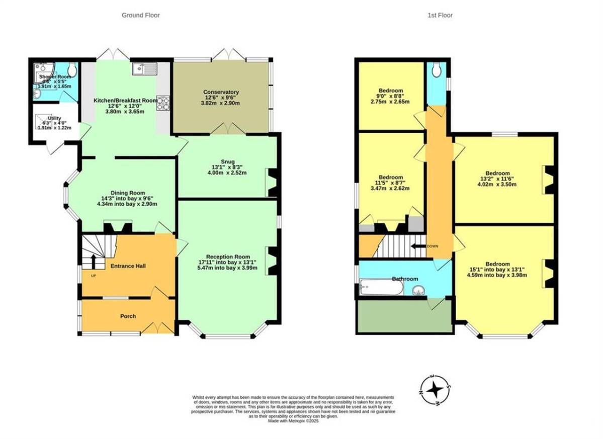 A grand entrance hall provides an immediate hint of what to expect and leads through to three reception rooms, a kitchen/breakfast room, conservatory, utility room and a downstairs shower room concludes the ground floor.