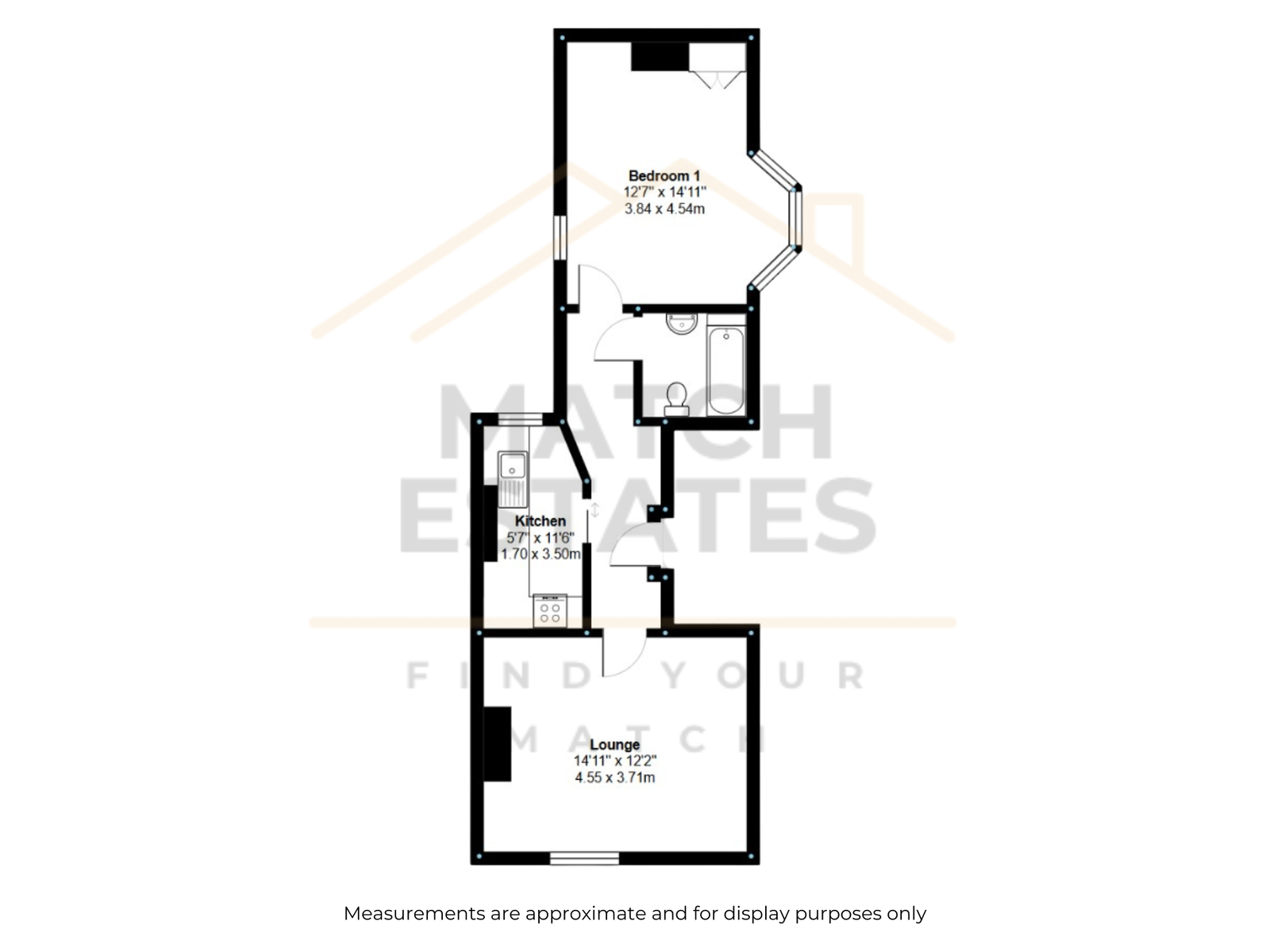 Inside, the apartment offers a bright and welcoming lounge, enhanced by large windows that fill the space with natural light. The modern kitchen is generously sized, while the rear-facing bedroom benefits from a lovely bay window, creating an airy and relaxing space. A well-appointed bathroom completes the layout.