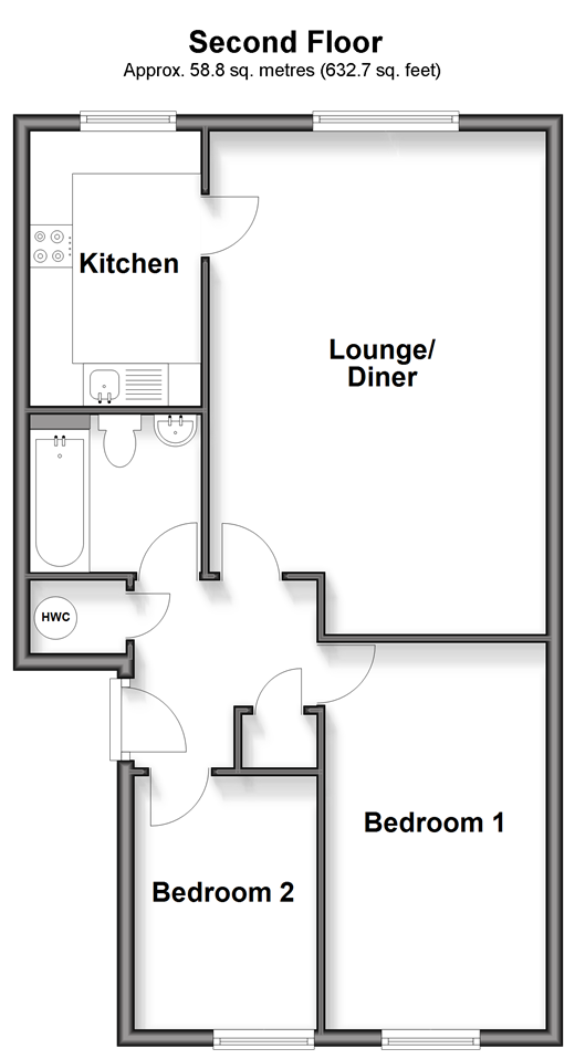 Located centrally only minutes from Deal's High Street with a vast selection of shops and restaurants, you're only minutes away from everything you need. The main station is also a short walk away. This home would be suitable for a first time buy or secure holiday home. The current owner has previously used this as a profitable rental property. Set on the top floor, this property benefits from views over the nearby park. There is also residents parking. Room sizes:Entrance HallwayBedroom 2: 9'8 x 7'0 (2.95m x 2.14m)Bedroom 1: 15'1 x 8'5 (4.60m x 2.57m)Lounge/Diner: 19'7 x 12'9 (5.97m x 3.89m)Kitchen: 10'8 x 6'7 (3.25m x 2.01m)BathroomResidents Parking