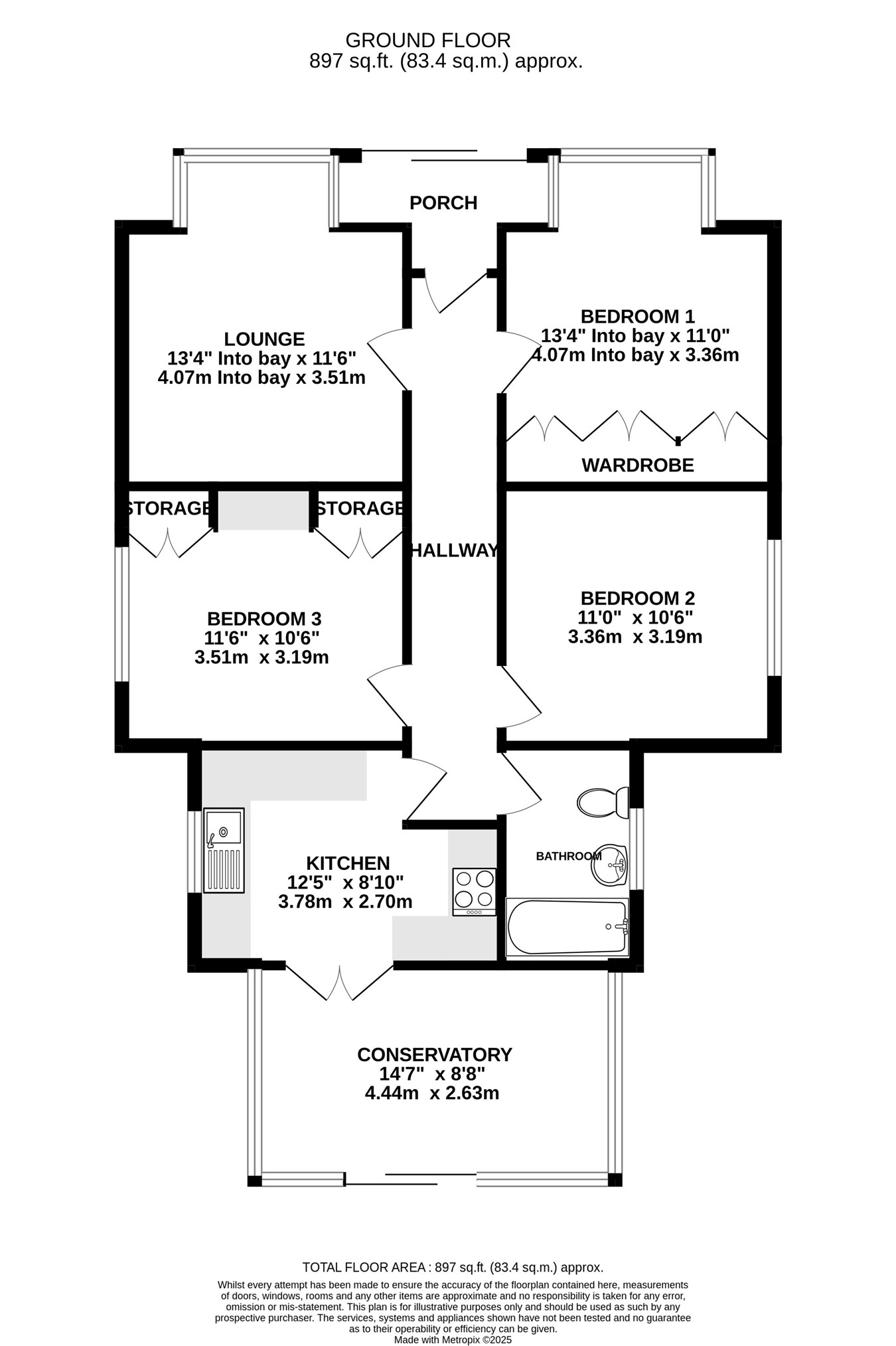 13' 4" x 11' 6" (4.06m x 3.51m)