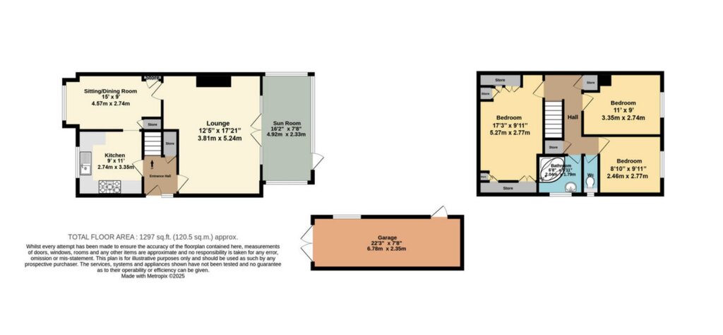 Upstairs, three well-proportioned double bedrooms await, with the principal bedroom benefitting from a full range of fitted wardrobes. The family bathroom is accompanied by a separate W/C for convenience.