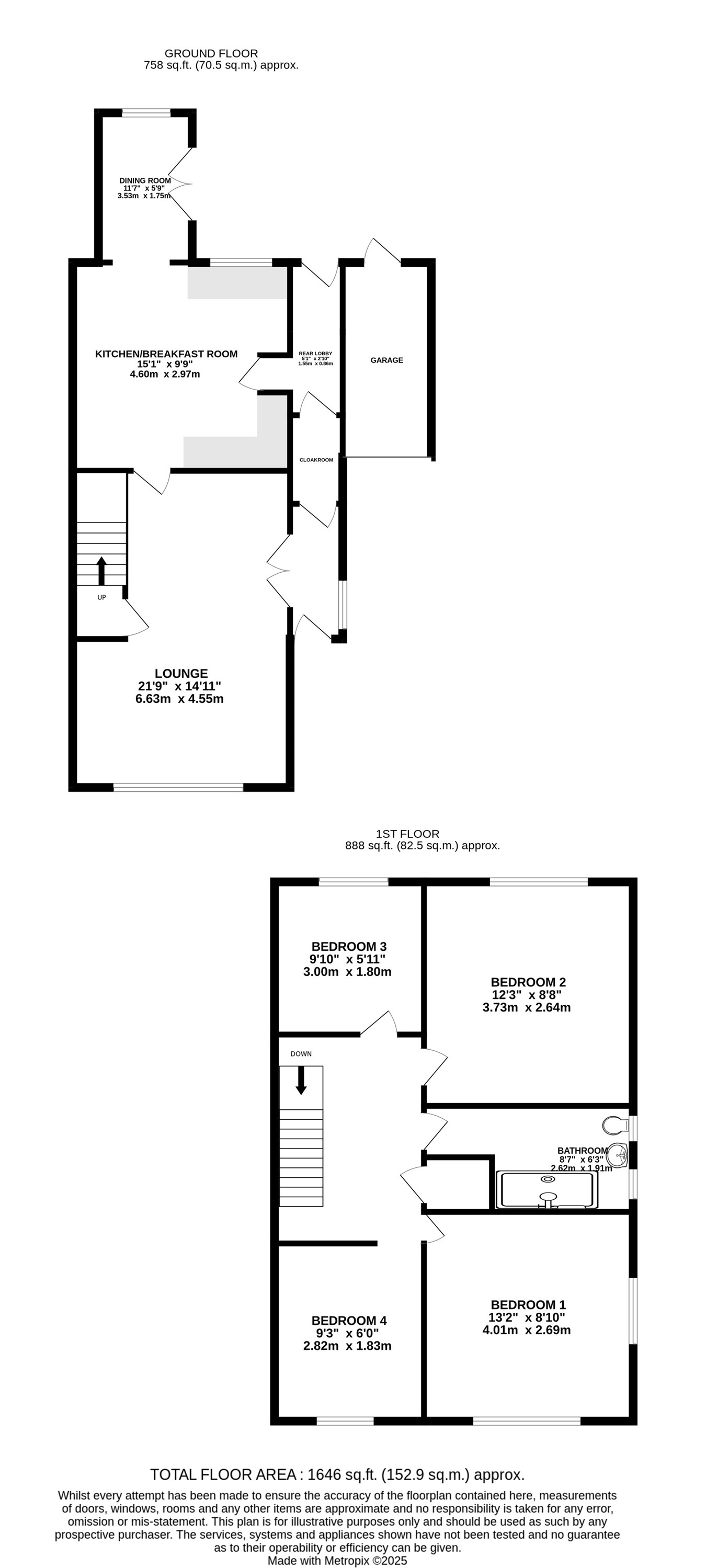 The property itself has a front garden with a driveway to the side and a garage. On entering there is a handy entrance lobby and downstairs cloakroom. The lounge is an excellent size with brick built recessed hearth as a focal point. Large windows allow lots of light to flood in. The kitchen is well appointed with a range of cupboards and work surfaces. Leading off of the kitchen is a dining room or would also make an ideal home office/study area. Upstairs are four good sized bedrooms and a family shower room. To the rear is a practical, fence enclosed garden with patio area. There is also access to the garage from the garden. Ready to move into, viewing is highly recommended.