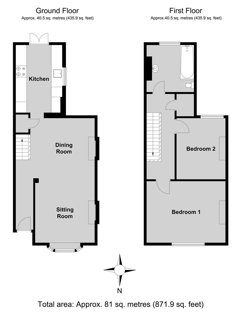 The bright and generously proportioned accommodation is arranged on the ground floor to provide an entrance hall, a sitting room open-plan to a dining room, and a contemporary kitchen with a pair of casement doors opening to the garden. The first floor comprises two bedrooms and a well-appointed bathroom.