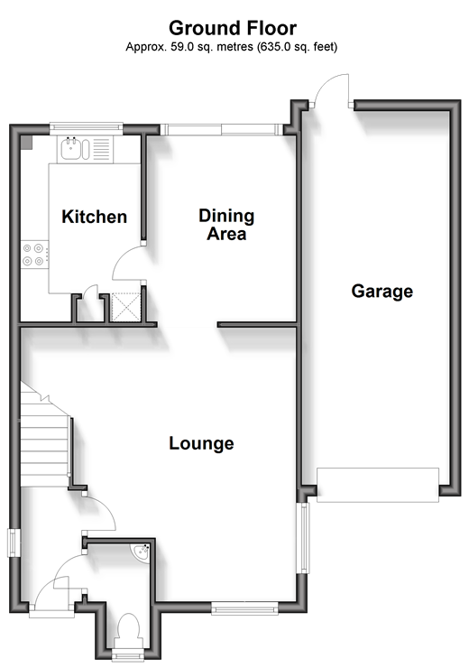 Please refer to the footnote regarding the services and appliances. Room sizes:Entrance HallCloakroomLounge: 16'0 x 16'0 (4.88m x 4.88m) narrowing to 12'2 x 13'0 (3.71m x 3.97m)Kitchen: 10'9 x 7'1 (3.28m x 2.16m)Dining Area: 10'9 x 8'8 (3.28m x 2.64m)LandingBedroom 1: 11'9 (3.58m) narrowing to 9'11 (3.02m) x 10'0 (3.05m)En-Suite Shower RoomBedroom 2: 12'2 x 8'6 (3.71m x 2.59m)Bedroom 3: 10'0 x 7'3 (3.05m x 2.21m)BathroomFront & Rear GardensGarage & Driveway