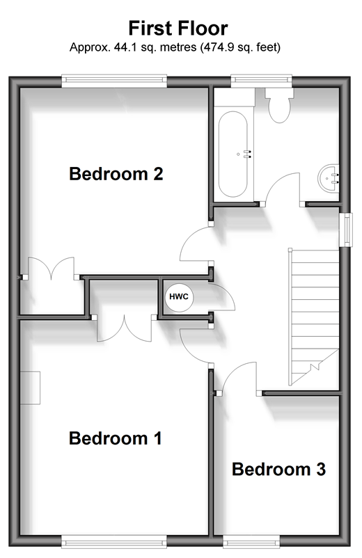Please refer to the footnote regarding the services and appliances. Room sizes:Entrance HallwayDownstairs CloakroomLounge: 15'1 x 11'1 (4.60m x 3.38m)Kitchen/Dining Area: 18'2 x 10'1 (5.54m x 3.08m)LandingBedroom 2: 10'8 x 10'8 (3.25m x 3.25m)Bedroom 1: 12'4 x 11'3 (3.76m x 3.43m)Bedroom 3: 7'9 x 6'8 (2.36m x 2.03m)BathroomFront & Rear GardensGarage