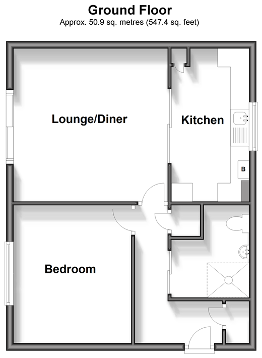 Please refer to the footnote regarding the services and appliances. Room sizes:Entrance HallLounge/Diner: 14'0 x 13'7 (4.27m x 4.14m)Kitchen: 13'6 x 6'10 (4.12m x 2.08m)Bedroom: 12'2 x 10'6 (3.71m x 3.20m)Shower RoomCommunal Gardens