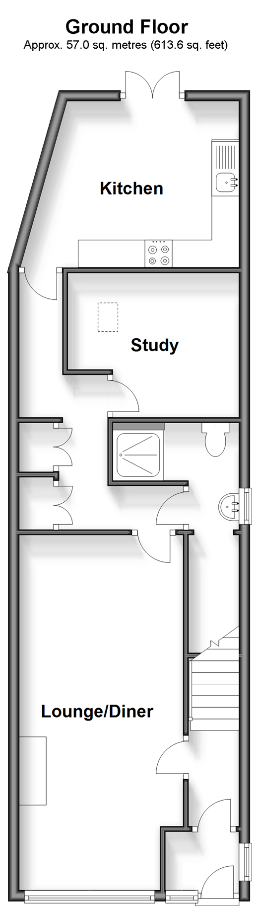 This stunning end of terrace home is perfect for any first time buyer looking for a large home with a beautiful spacious garden with a decking area for those perfect summer evenings. The property is aesthetically very well done with a home study currently being used as a third bedroom. Room sizes:PorchHallwayLounge/Diner: 21'9 x 10'1 (6.63m x 3.08m)Kitchen: 12'1 x 10'0 (3.69m x 3.05m)Study: 10'6 x 9'1 (3.20m x 2.77m)Shower RoomLandingBedroom 1: 13'7 x 11'1 (4.14m x 3.38m)Bedroom 2: 13'1 x 8'3 (3.99m x 2.52m)BathroomRear Garden