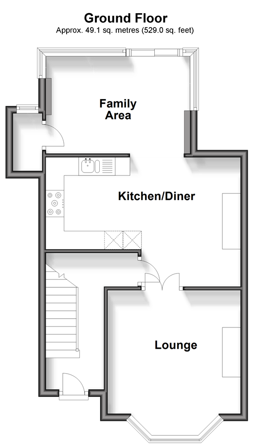 Welcome to this stunning mid-terrace house perfectly positioned in a quiet, family-friendly neighbourhood. The bright and spacious living room is ideal for relaxing with family or entertaining guests. Located within easy reach of local schools, parks and amenities, this property is ideal for families. Room sizes:Entrance HallLounge: 13'7 into bay x 12'0 (4.14m x 3.66m)Kitchen/Diner: 17'9 x 9'3 (5.41m x 2.82m) plus 9'0 x 2'7 (2.75m x 0.79m)Family Area: 12'7 x 9'0 (3.84m x 2.75m)Utility RoomLandingBedroom 1: 13'6 into bay x 9'6 up to fitted wardrobes (4.12m x 2.90m)Bedroom 2: 11'10 x 11'6 (3.61m x 3.51m)Bedroom 3: 8'0 x 6'5 (2.44m x 1.96m)BathroomDrivewayRear Garden