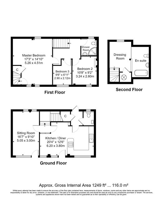 Please refer to the footnote regarding the services and appliances. Room sizes:Kitchen/Diner: 20'4 x 12'6 (6.20m x 3.81m)Sitting Room: 16'7 x 9'10 (5.06m x 3.00m)CloakroomLandingBedroom 1: 17'3 x 14'10 (5.26m x 4.52m)Bedroom 2: 10'8 x 9'2 (3.25m x 2.80m)Bedroom 3: 9'6 x 6'11 (2.90m x 2.11m)Shower RoomDressing RoomEn-suite Bathroom2 Allocated Parking SpacesCourtyard Garden