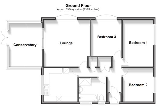 Please refer to the footnote regarding the services and appliances. Room sizes:PorchEntrance HallwayBedroom 2: 10'7 x 8'9 (3.23m x 2.67m)Bedroom 1: 13'9 x 9'0 (4.19m x 2.75m)Bedroom 3: 9'3 x 9'0 (2.82m x 2.75m)Lounge: 14'2 x 13'4 (4.32m x 4.07m)Conservatory: 12'6 x 10'0 (3.81m x 3.05m)Kitchen: 10'0 x 9'6 (3.05m x 2.90m)BathroomGarageDrivewayFront GardenRear Garden