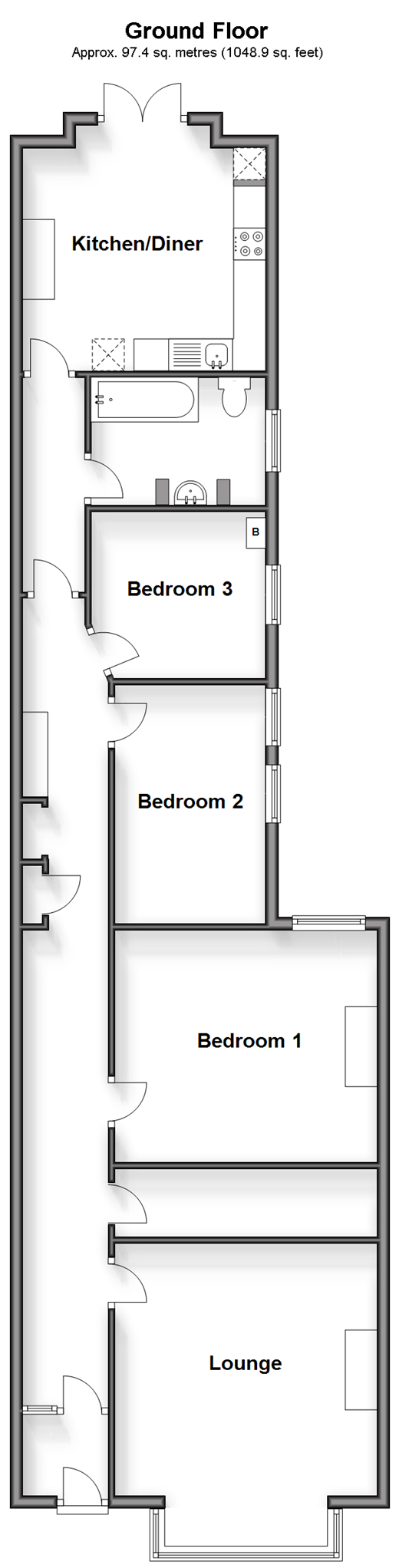 This exceptional ground-floor apartment is generously proportioned, offering ample living space for comfort and versatility. One of its standing features is a spacious rear garden, perfect for outdoor relaxation and entertaining. The residence perfectly blends modern living with classic charm. Room sizes:PorchEntrance HallwayLounge: 15'9 x 13'4 (4.80m x 4.07m)Bedroom 1: 13'5 x 11'9 (4.09m x 3.58m)Bedroom 2: 12'2 x 7'7 (3.71m x 2.31m)Bedroom 3: 8'8 x 8'5 (2.64m x 2.57m)BathroomKitchen/Diner: 12'6 x 11'2 (3.81m x 3.41m)Front GardenRear Garden