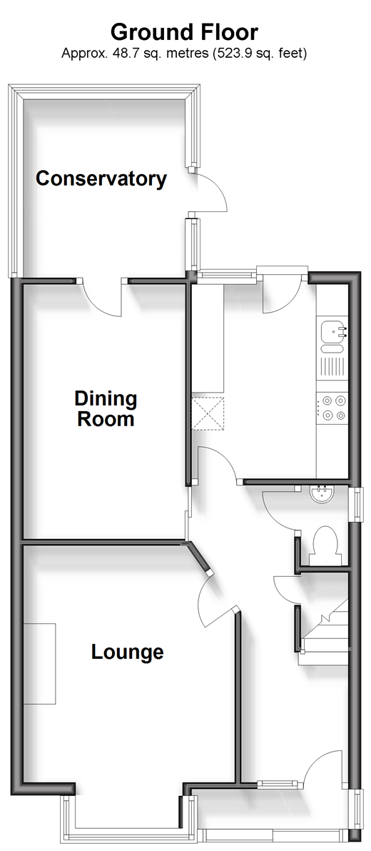Please refer to the footnote regarding the services and appliances. Room sizes:Entrance HallwayLounge: 12'0 x 8'9 (3.66m x 2.67m)Dining Room: 12'9 x 8'2 (3.89m x 2.49m)Kitchen: 9'8 x 7'9 (2.95m x 2.36m)Conservatory: 9'8 x 9'1 (2.95m x 2.77m)LandingBathroomBedroom 1: 12'8 x 9'8 (3.86m x 2.95m)Bedroom 2: 12'9 x 8'8 (3.89m x 2.64m)Bedroom 3: 8'4 x 6'5 (2.54m x 1.96m)DrivewayRear Garden