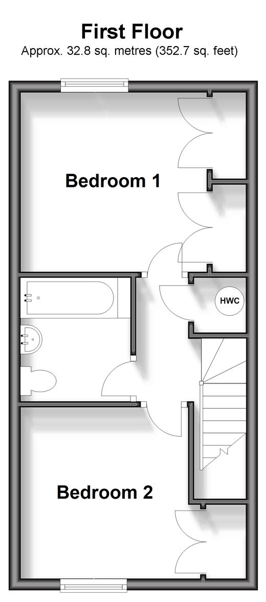 Please refer to the footnote regarding the services and appliances. Room sizes:Entrance HallLounge: 16'1 x 12'9 (4.91m x 3.89m)Kitchen: 11'2 x 6'7 (3.41m x 2.01m)LandingBedroom 1: 10'8 up to wardrobe x 9'8 (3.25m x 2.95m)Bedroom 2: 10'7 x 10'1 (3.23m x 3.08m)Bathroom: 7'0 x 6'5 (2.14m x 1.96m)Front & Rear GardensAllocated ParkingVisitors Parking