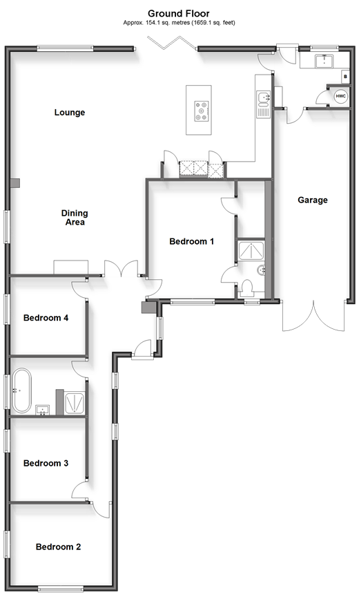 A unique home set in a desirable village location. This detached bungalow has a high level of finish throughout meaning no work is needed here; just decide where you will put your furniture & relax. Room sizes:Entrance HallDining Area: 16'3 x 10'5 (4.96m x 3.18m)Lounge: 17'10 x 15'3 (5.44m x 4.65m)Kitchen: 15'2 x 13'10 (4.63m x 4.22m)Utility RoomBedroom 1: 14'0 x 10'4 (4.27m x 3.15m)En-Suite Shower RoomDressing RoomBedroom 2: 12'0 x 9'9 (3.66m x 2.97m)Bedroom 3: 9'11 x 8'10 (3.02m x 2.69m)Bedroom 4: 9'3 x 8'10 (2.82m x 2.69m)BathroomDriveway & GarageRear Garden