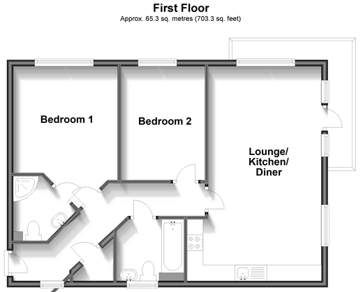 Well presented first floor apartment in a popular and convenient location, with open plan living space and a balcony. Just a short walk to local shops, primary school and bus stop. Picturesque countryside walks nearby. Room sizes:Entrance HallLounge/Kitchen/Diner: 22'1 x 11'11 (6.74m x 3.63m)BalconyBedroom 1: 12'7 x 10'8 (3.84m x 3.25m)En Suite Shower Room: 6'6 x 6'0 (1.98m x 1.83m)Bedroom 2: 12'0 x 8'7 (3.66m x 2.62m)Bathroom: 6'9 x 6'5 (2.06m x 1.96m)Allocated ParkingCommunal Gardens