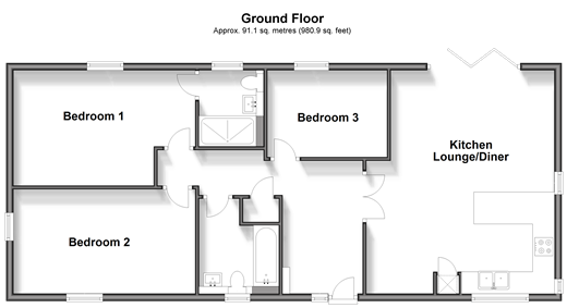 Please refer to the footnote regarding the services and appliances. Room sizes:Entrance HallKitchen/Lounge/Diner: 20'2 x 16'9 (6.15m x 5.11m)Bedroom 1: 16'4 x 10'5 (4.98m x 3.18m)En Suite Shower Room: 6'8 x 5'9 (2.03m x 1.75m)Bedroom 2: 16'4 x 9'4 (4.98m x 2.85m)Bedroom 3: 10'9 x 7'8 (3.28m x 2.34m)Bathroom: 7'3 x 5'5 (2.21m x 1.65m)Front and Rear GardensOff Road ParkingElectric Car Charging Point