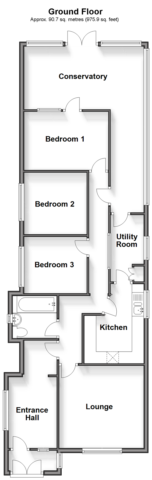 This detached bungalow is perfect for someone either downsizing or needs one level living. The property is being sold chain-free and benefits from a driveway and low maintenance rear garden. Situated in a central location close to local shops and amenities. Room sizes:PorchEntrance HallLounge: 11'11 x 8'11 (3.63m x 2.72m)Kitchen: 10'10 x 8'6 (3.30m x 2.59m)Utility Room: 8'11 x 4'11 (2.72m x 1.50m)BathroomBedroom 1: 11'11 x 11'10 (3.63m x 3.61m)Bedroom 2: 9'11 x 8'0 (3.02m x 2.44m)Bedroom 3: 8'11 x 7'11 (2.72m x 2.41m)Conservatory: 22'11 x 16'5 (6.99m x 5.01m)Front GardenRear GardenDriveway