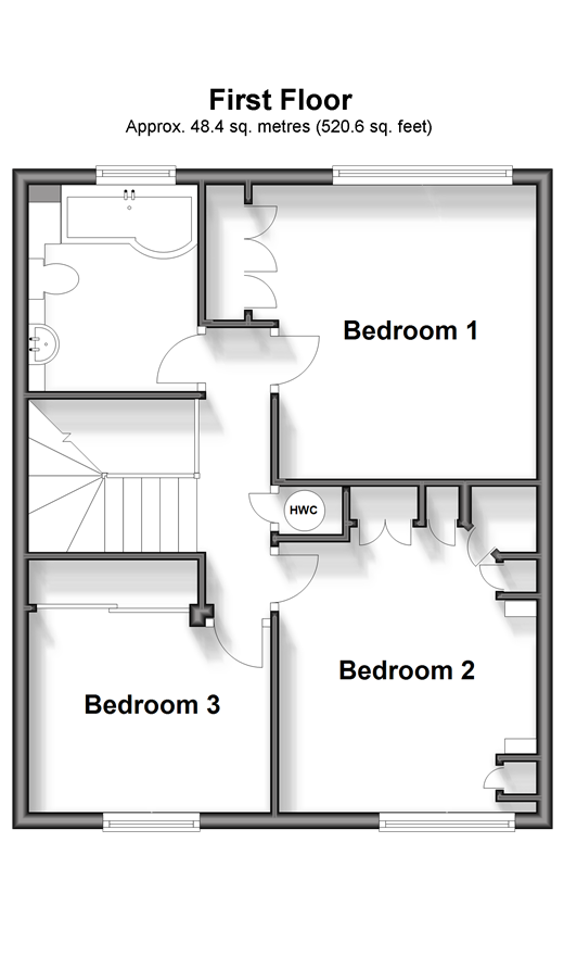 Please refer to the footnote regarding the services and appliances. Room sizes:Entrance HallwayLounge/Diner: 25'5 x 12'7 (7.75m x 3.84m)Kitchen: 11'5 x 10'0 (3.48m x 3.05m)Shower RoomLandingBathroomBedroom 1: 13'5 x 10'4 (4.09m x 3.15m)Bedroom 2: 12'0 x 11'4 (3.66m x 3.46m)Bedroom 3: 9'10 x 7'10 (3.00m x 2.39m)Garage and Off Road ParkingGarden to Rear