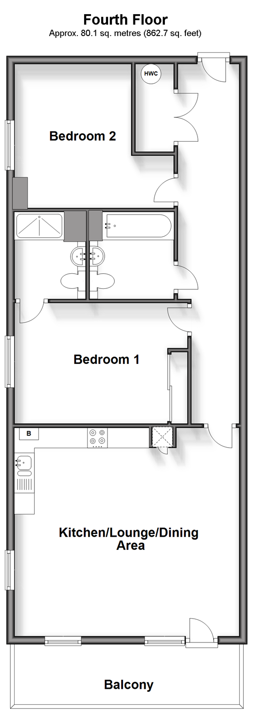 Please refer to the footnote regarding the services and appliances. Room sizes:Entrance HallKitchen/Lounge/Dining Area: 18'3 x 17'5 (5.57m x 5.31m)Bedroom 1: 13'10 x 9'0 (4.22m x 2.75m)En-suite Shower RoomBedroom 2: 13'1 x 11'0 (3.99m x 3.36m)BathroomOUTSIDEBalconyAllocated Parking