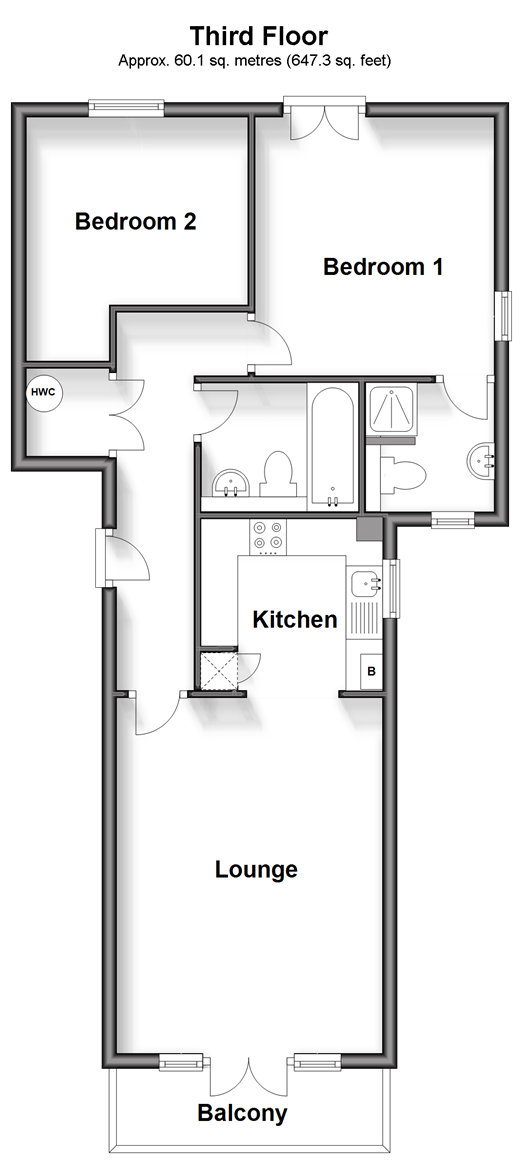 Please refer to the footnote regarding the services and appliances. Room sizes:Lounge: 15'10 x 11'10 (4.83m x 3.61m)BalconyKitchen: 8'2 x 7'7 (2.49m x 2.31m)Bedroom 1: 11'6 x 10'10 (3.51m x 3.30m)En-Suite Shower Room: 5'9 x 5'9 (1.75m x 1.75m)Bedroom 2: 10'11 x 9'11 (3.33m x 3.02m)Bathroom: 7'1 x 5'9 (2.16m x 1.75m)Allocated Parking