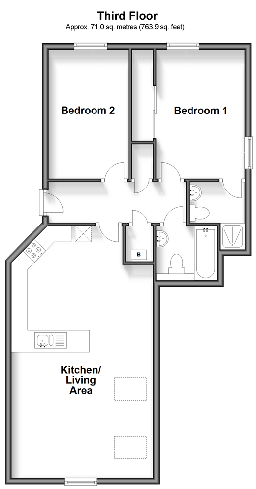 Tucked away in a private gated development this stunning third floor apartment with allocated parking is a stones throw from the historic High Street with its restaurants, bars, boutiques and high speed train station. Room sizes:HallwayKitchen/Living area: 25'7 x 14'4 (7.80m x 4.37m)Bedroom 1: 12'11 x 8'9 (3.94m x 2.67m)En-Suite Shower RoomBedroom 2: 13'0 x 8'0 (3.97m x 2.44m)BathroomAllocated Parking