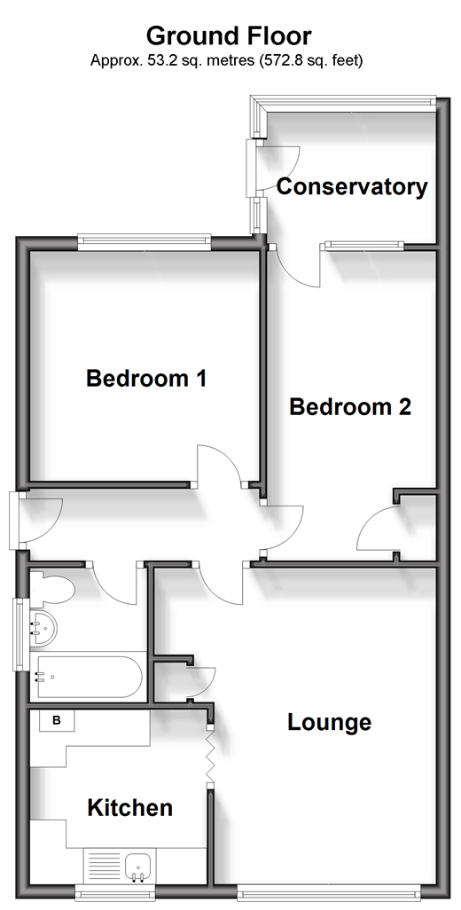 Please refer to the footnote regarding the services and appliances. Room sizes:Entrance HallLounge: 14'11 x 10'3 (4.55m x 3.13m)Conservatory: 7'3 x 5'1 (2.21m x 1.55m)Kitchen: 8'0 x 7'9 (2.44m x 2.36m)Bedroom 1: 10'8 x 10'8 (3.25m x 3.25m)Bedroom 2: 13'11 x 7'7 (4.24m x 2.31m)Bathroom: 6'2 x 5'7 (1.88m x 1.70m)GarageDrivewayFront GardenRear Garden