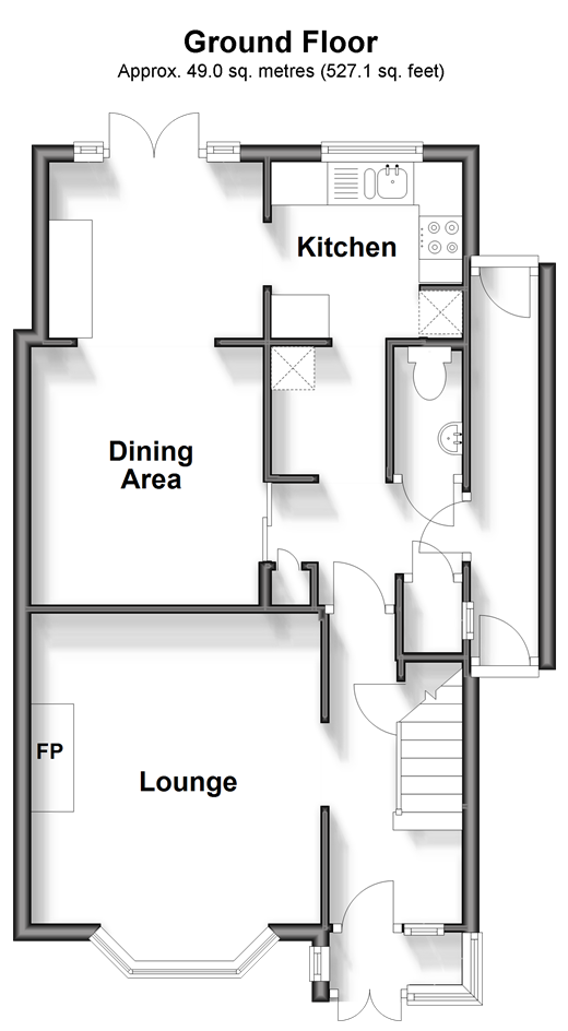Please refer to the footnote regarding the services and appliances. Room sizes:Entrance PorchEntrance HallLounge: 11'10 x 10'11 (3.61m x 3.33m)Inner HallwayCloakroomDining Area: 18'4 x 9'2 (5.59m x 2.80m)Kitchen: 13'4 x 7'1 (4.07m x 2.16m)LandingBedroom 1: 14'6 x 9'9 (4.42m x 2.97m)Bedroom 2: 11'1 x 9'11 (3.38m x 3.02m)Bedroom 3: 6'11 x 6'1 (2.11m x 1.86m)Shower Room: 7'0 x 5'7 (2.14m x 1.70m)Front GardenRear GardenOff Road Parking To Rear
