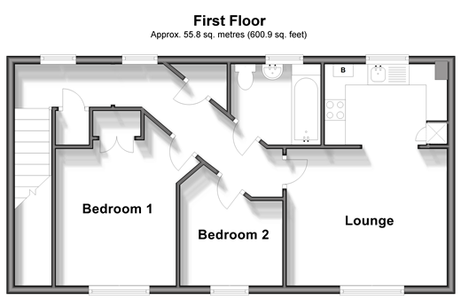 Please refer to the footnote regarding the services and appliances. Room sizes:Entrance HallLounge: 12'8 x 10'10 (3.86m x 3.30m)Kitchen: 9'8 x 6'4 (2.95m x 1.93m)Bedroom 1: 11'5 x 9'6 (3.48m x 2.90m)Bedroom 2: 9'9 x 8'1 (2.97m x 2.47m)Bathroom: 7'2 x 6'4 (2.19m x 1.93m)Driveway For 2 Cars